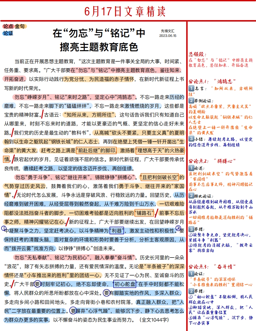 2023年人民日报精读20230617 在“勿忘”与“铭记”中擦亮主题教育底色(20230615)