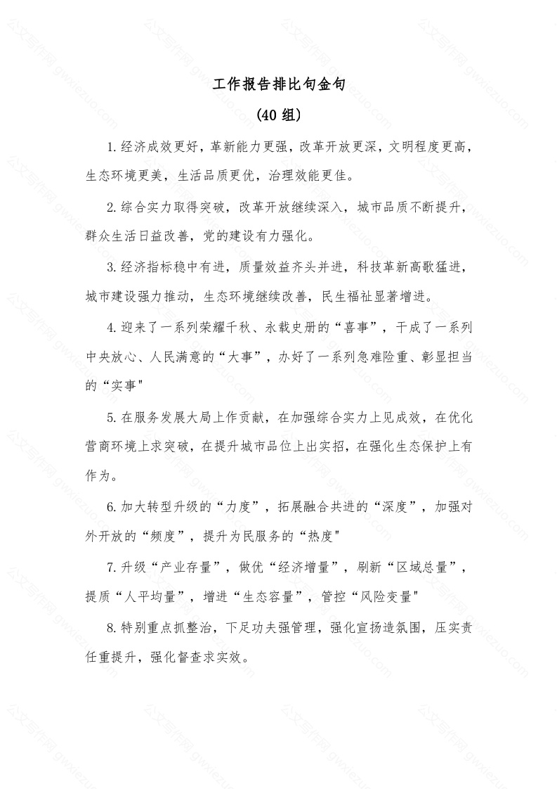 (40组)工作报告排比句金句
