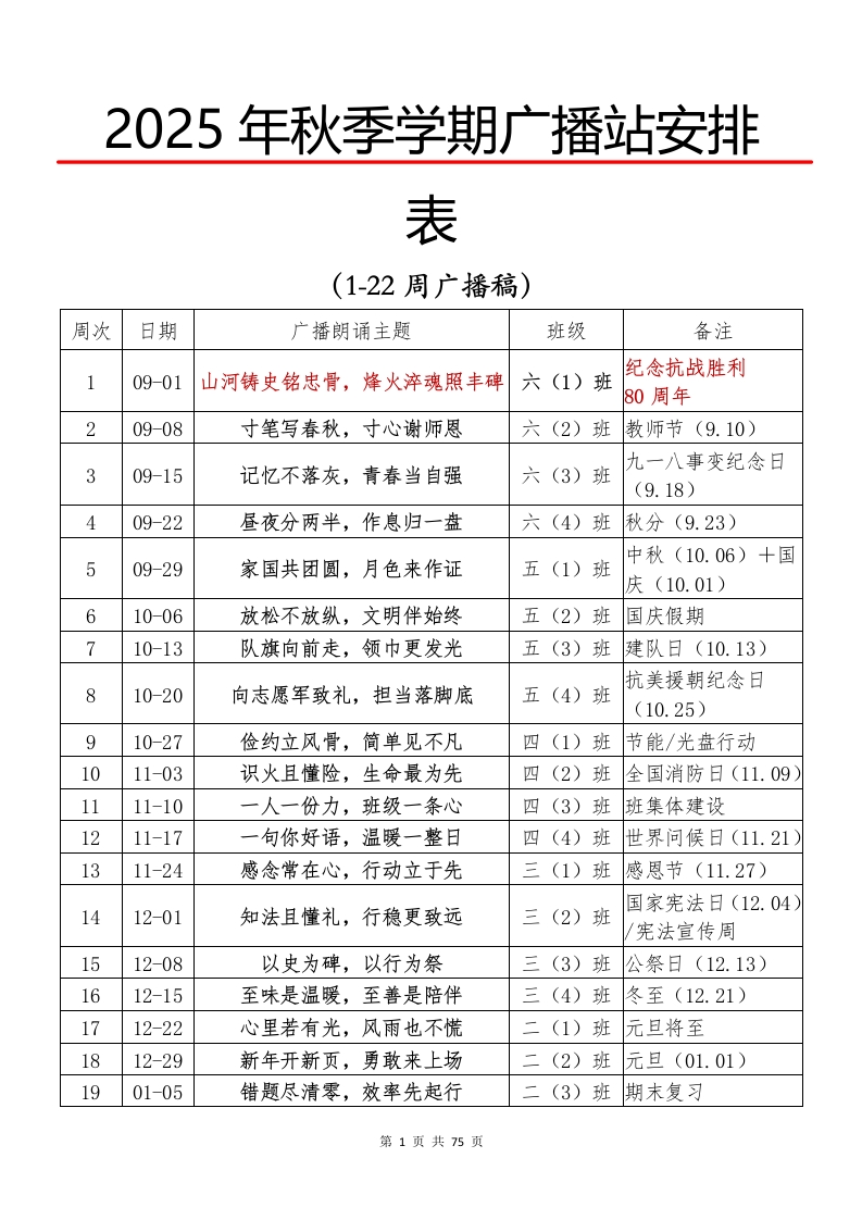 2025年秋季红领巾广播站广播稿