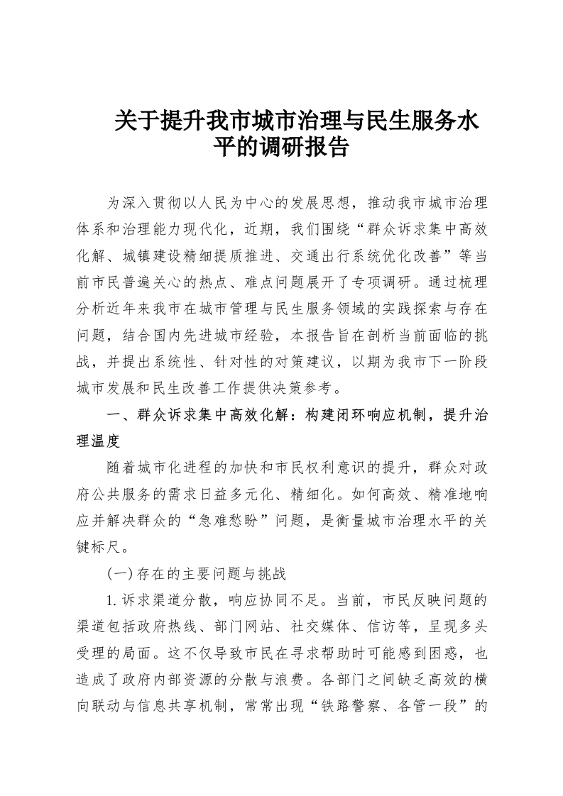 首页精选范文关于提升我市城市治理与民生服务水平的调研报告