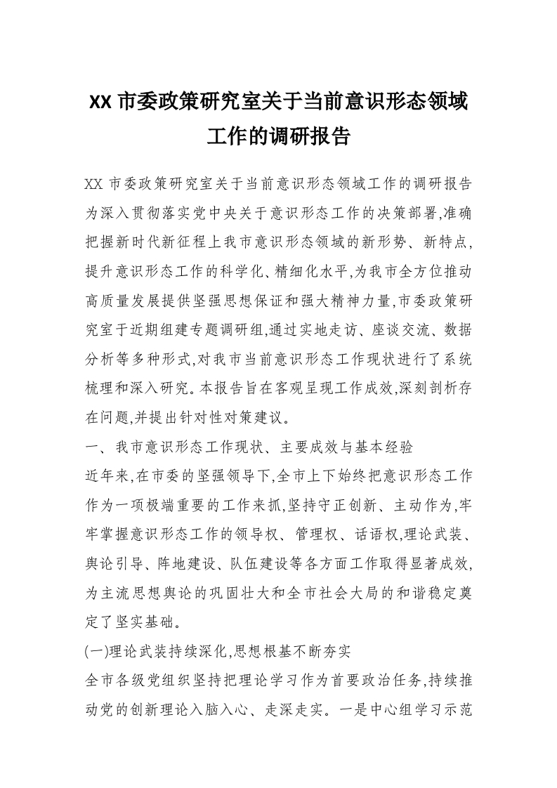 XX市委政策研究室关于当前意识形态领域工作的调研报告