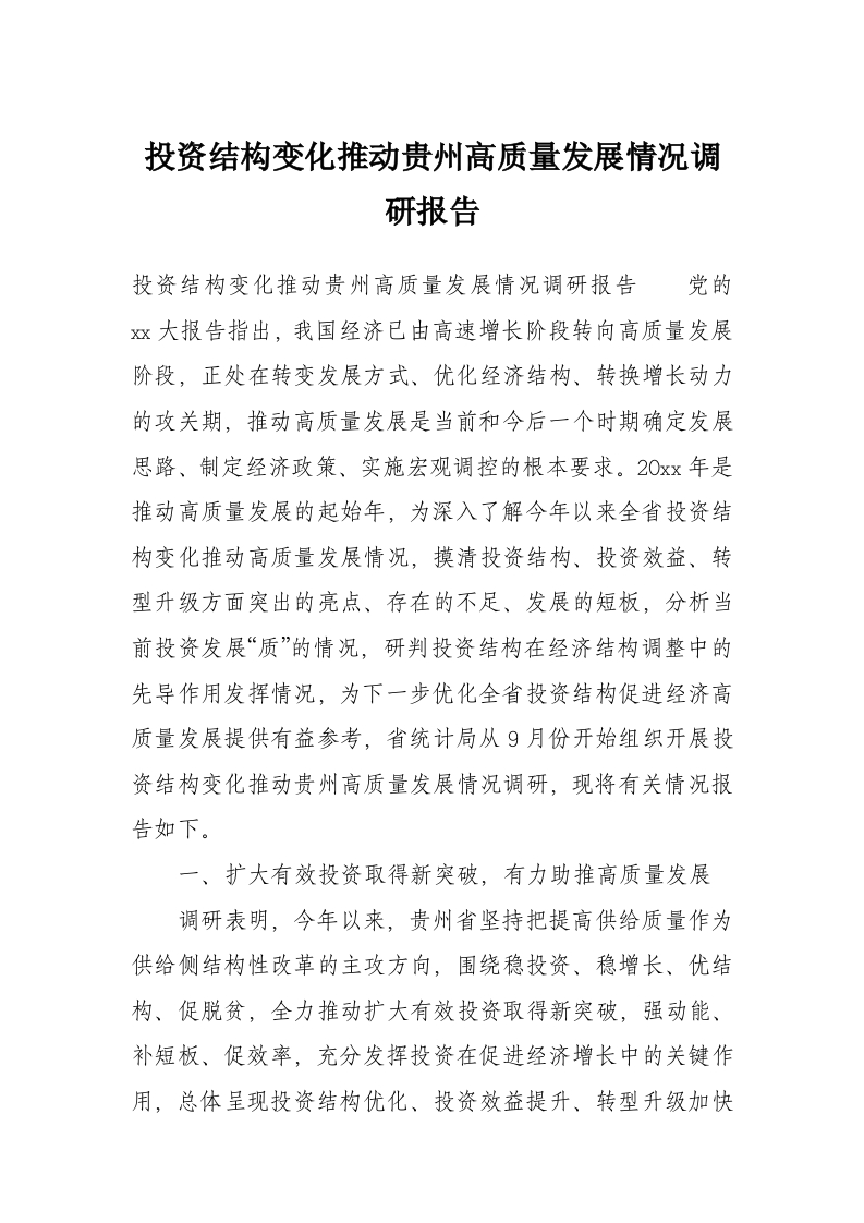首页讲课讲稿投资结构变化推动贵州高质量发展情况调研报告