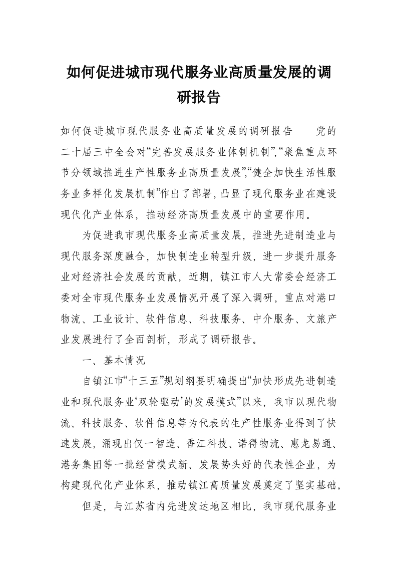 首页写作素材如何促进城市现代服务业高质量发展的调研报告