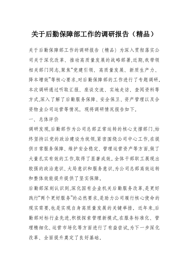 首页写作素材关于后勤保障部工作的调研报告(精品)