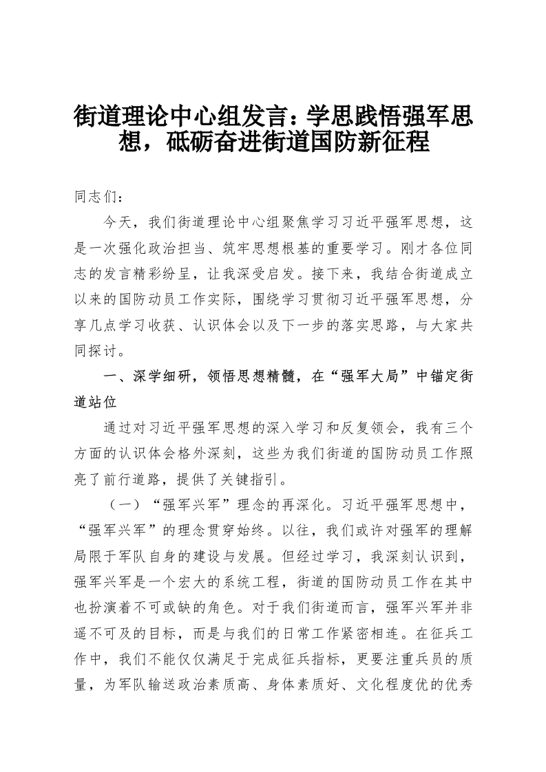 街道理论中心组发言:学思践悟强军思想,砥砺奋进街道国防新征程