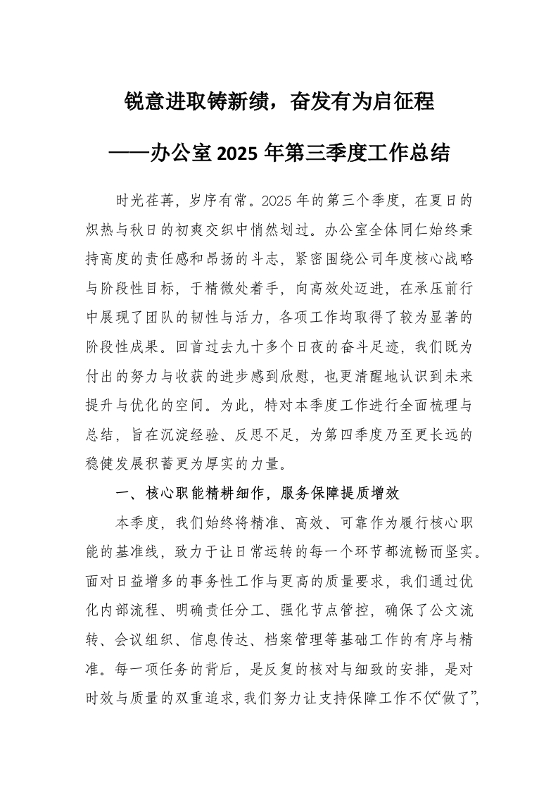 办公室2025年第三季度工作总结:锐意进取铸新绩,奋发有为启征程