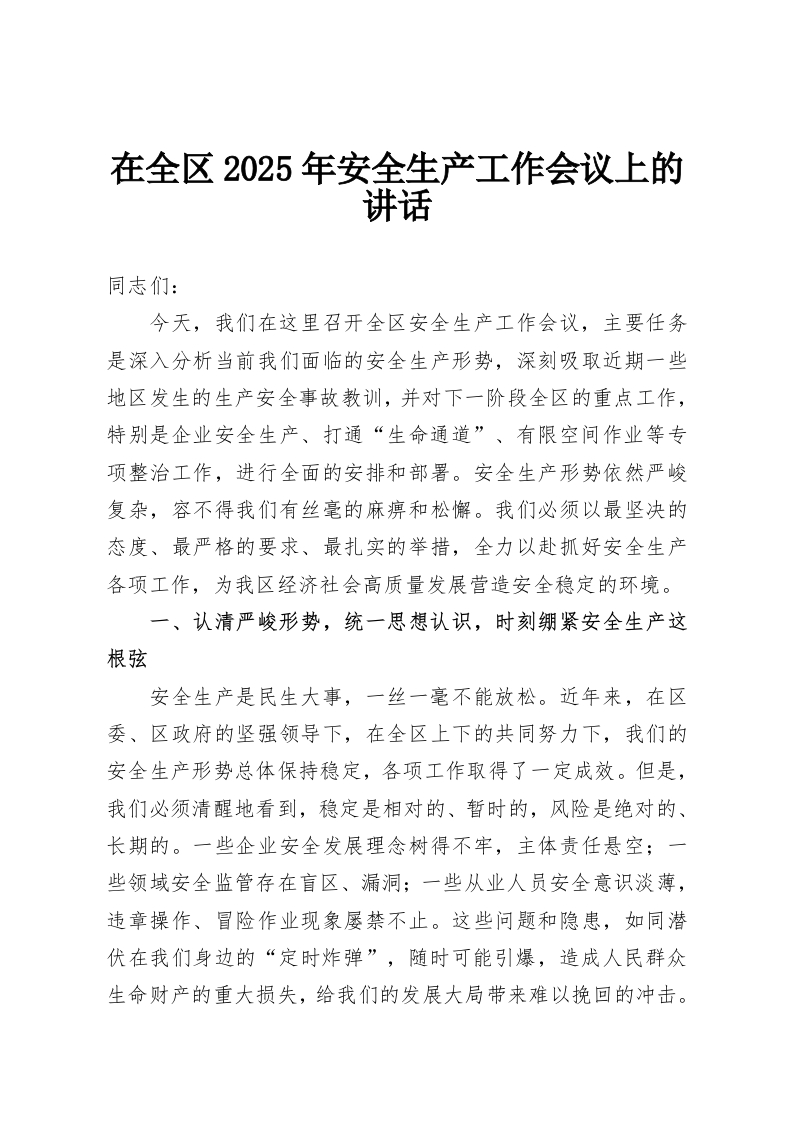首页精选范文在全区2025年安全生产工作会议上的讲话