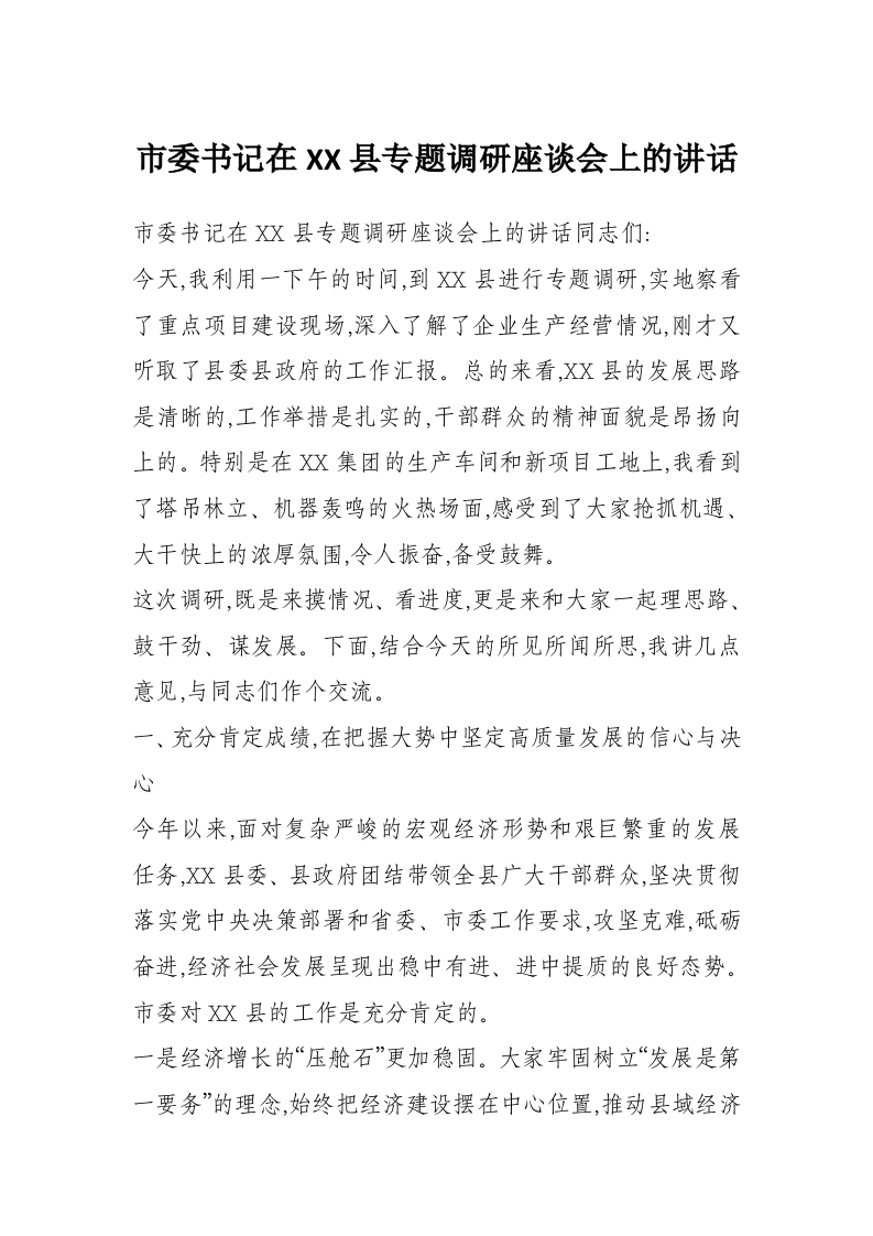 首页学习提升市委书记在XX县专题调研座谈会上的讲话