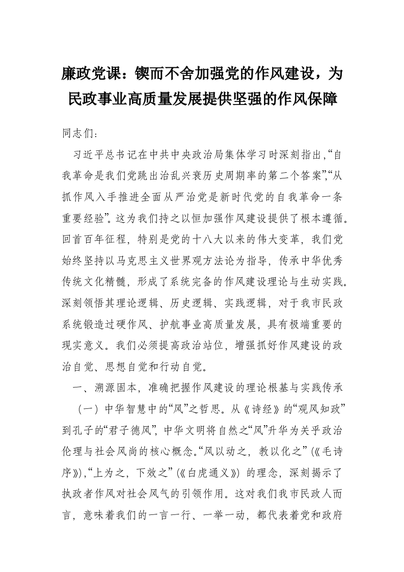 廉政党课:锲而不舍加强党的作风建设,为民政事业高质量发展提供坚强的作风保障