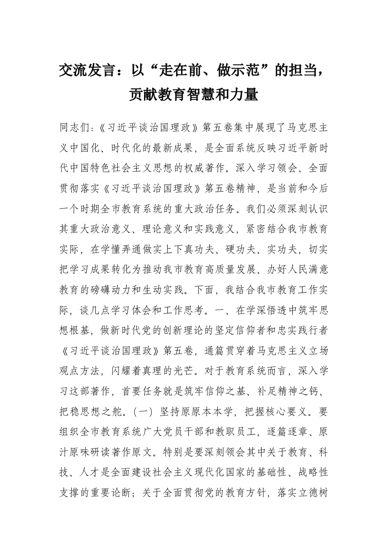 交流发言:以“走在前、做示范”的担当,贡献教育智慧和力量