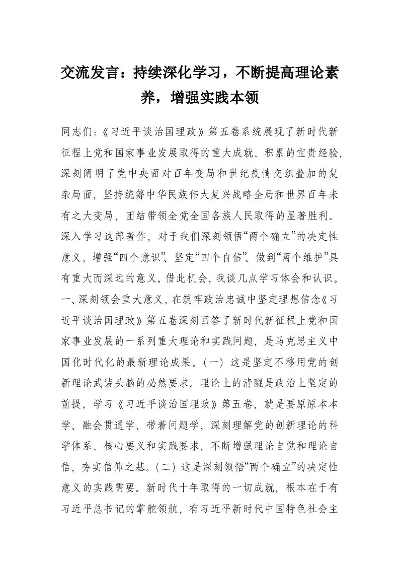 首页学习提升交流发言:持续深化学习,不断提高理论素养,增强实践本领