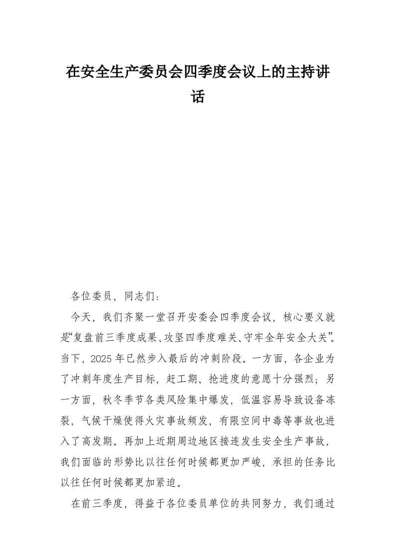 首页材料汇编在安全生产委员会四季度会议上的主持讲话
