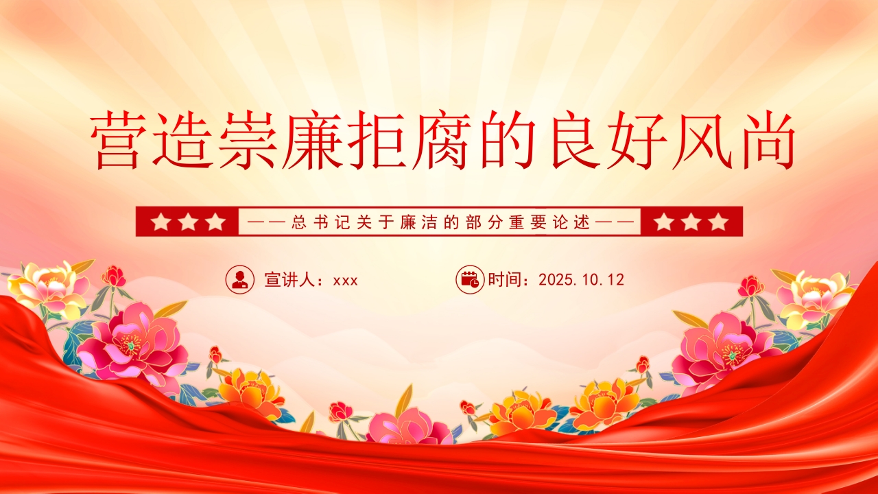 首页PPT模板营造崇廉拒腐的良好风尚PPT总书记重要论述党课课件