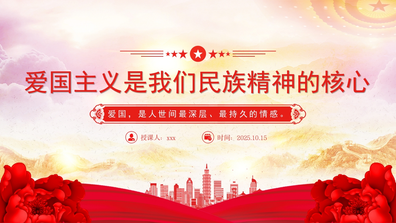 首页PPT模板爱国主义是我们民族精神的核心PPT总书记重要论述党课