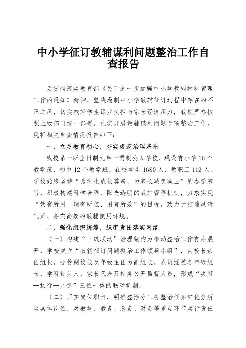 首页工作文档中小学征订教辅谋利问题整治工作自查报告