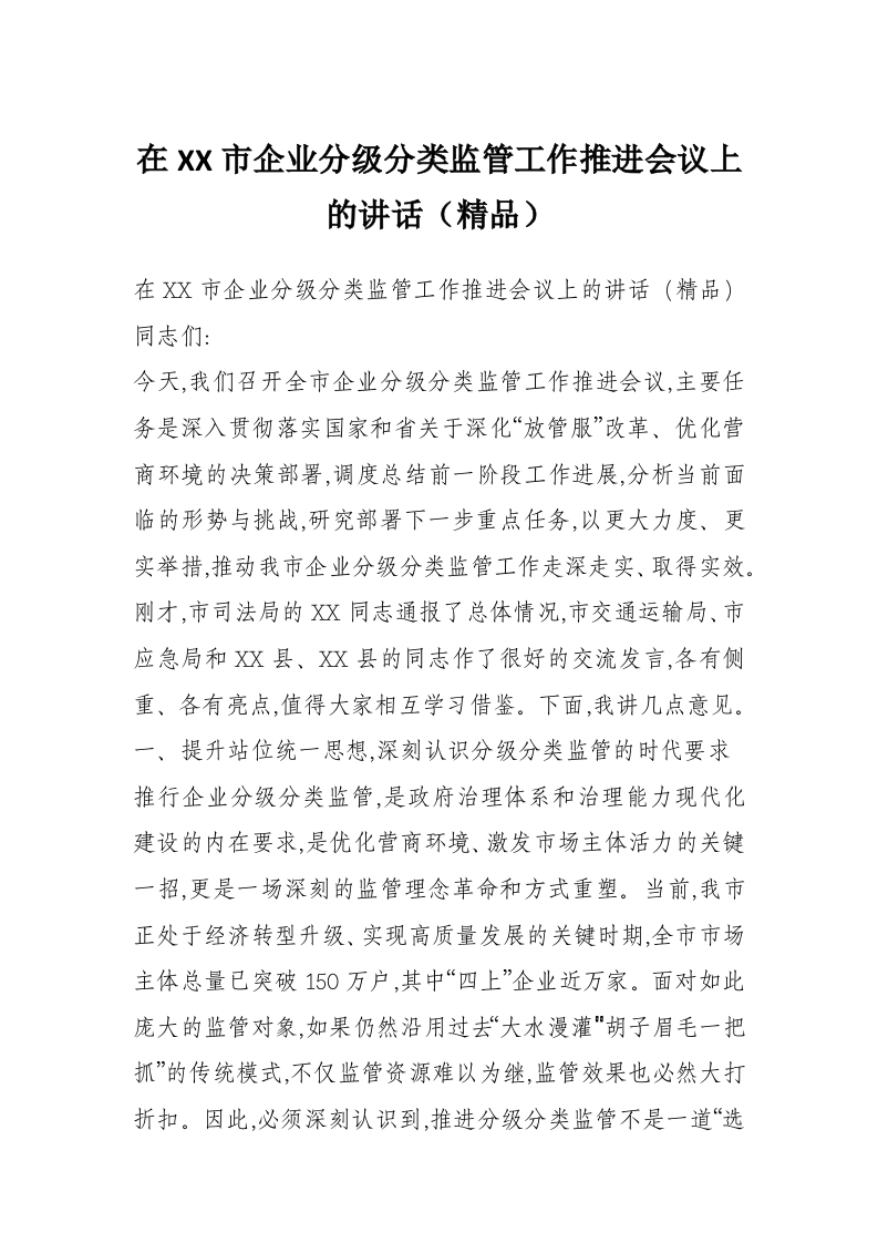 在XX市企业分级分类监管工作推进会议上的讲话(精品)