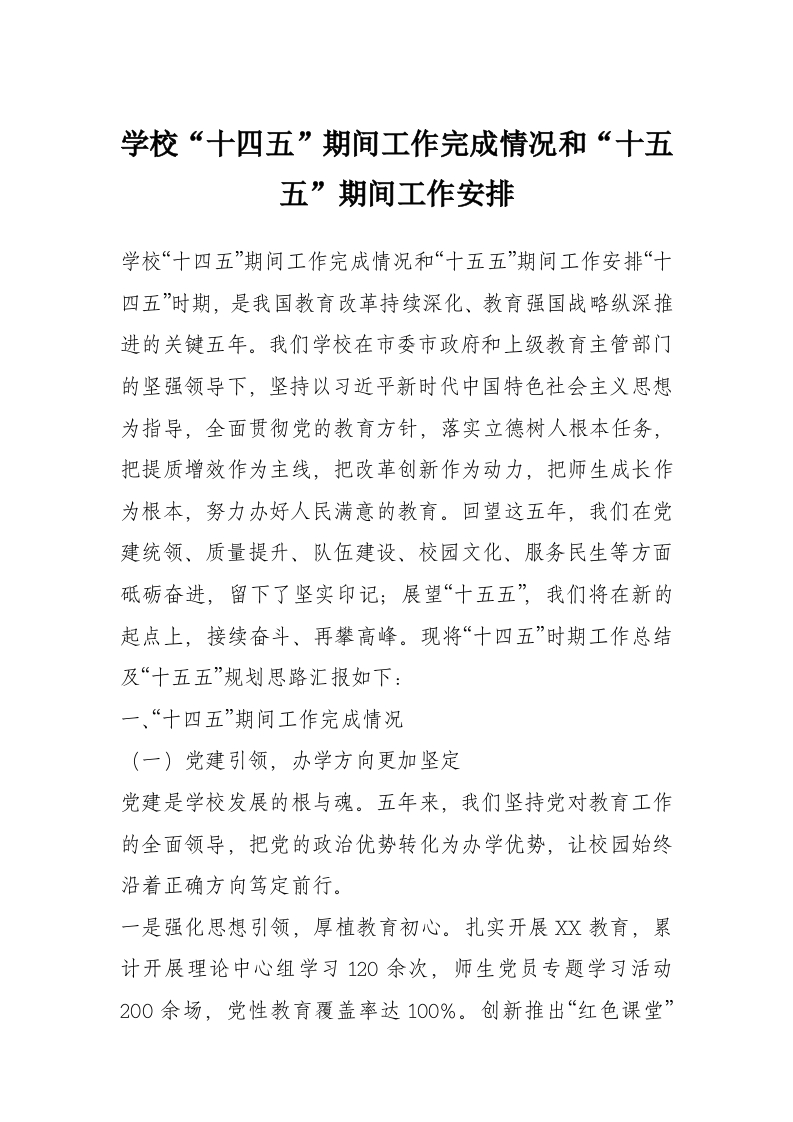 学校“十四五”期间工作完成情况和“十五五”期间工作安排