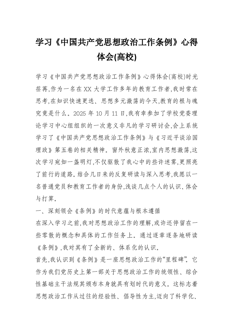 首页讲课讲稿学习《中国***思想政治工作条例》心得体会(高校)