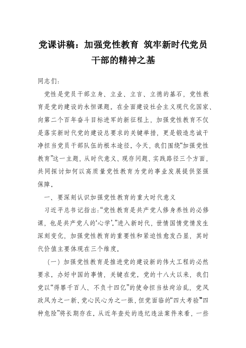 党课讲稿:加强党性教育 筑牢新时代党员干部的精神之基