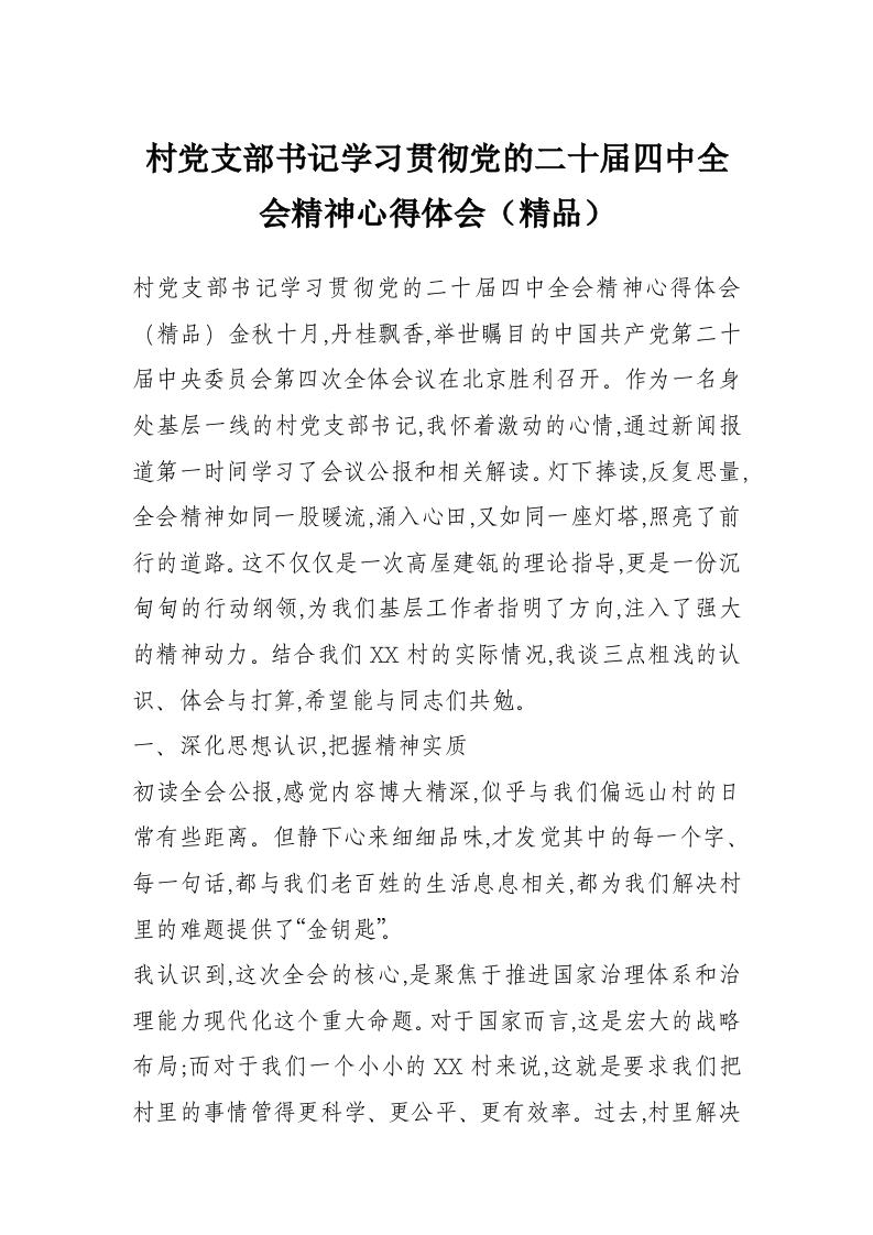 首页写作素材村党支部书记学习贯彻党的二十届四中***精神心得体会(精品)