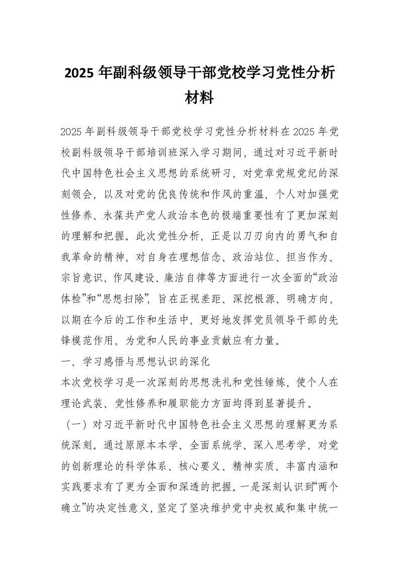 首页学习提升2025年副科级领导干部党校学习党性分析材料