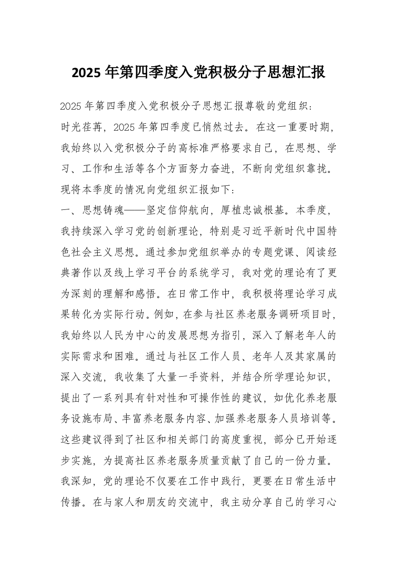 2025年第四季度入党积极分子思想汇报