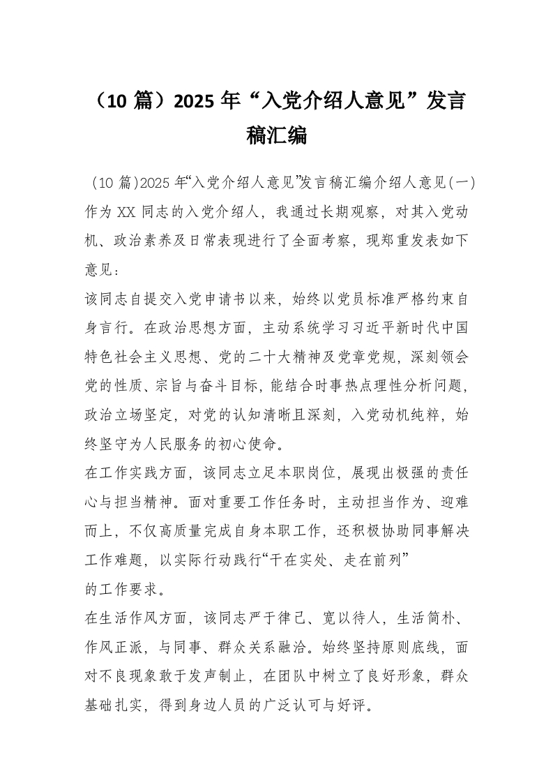 (10篇)2025年“入党介绍人意见”发言稿汇编