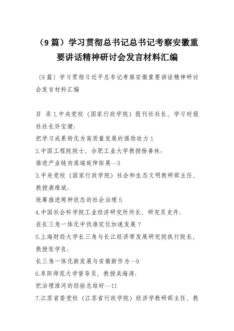 (9篇)学习贯彻总书记总书记考察安徽重要讲话精神研讨会发言材料汇编