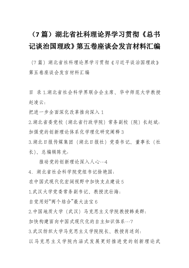 (7篇)湖北省社科理论界学习贯彻《总书记谈治国理政》第五卷座谈会发言材料汇编