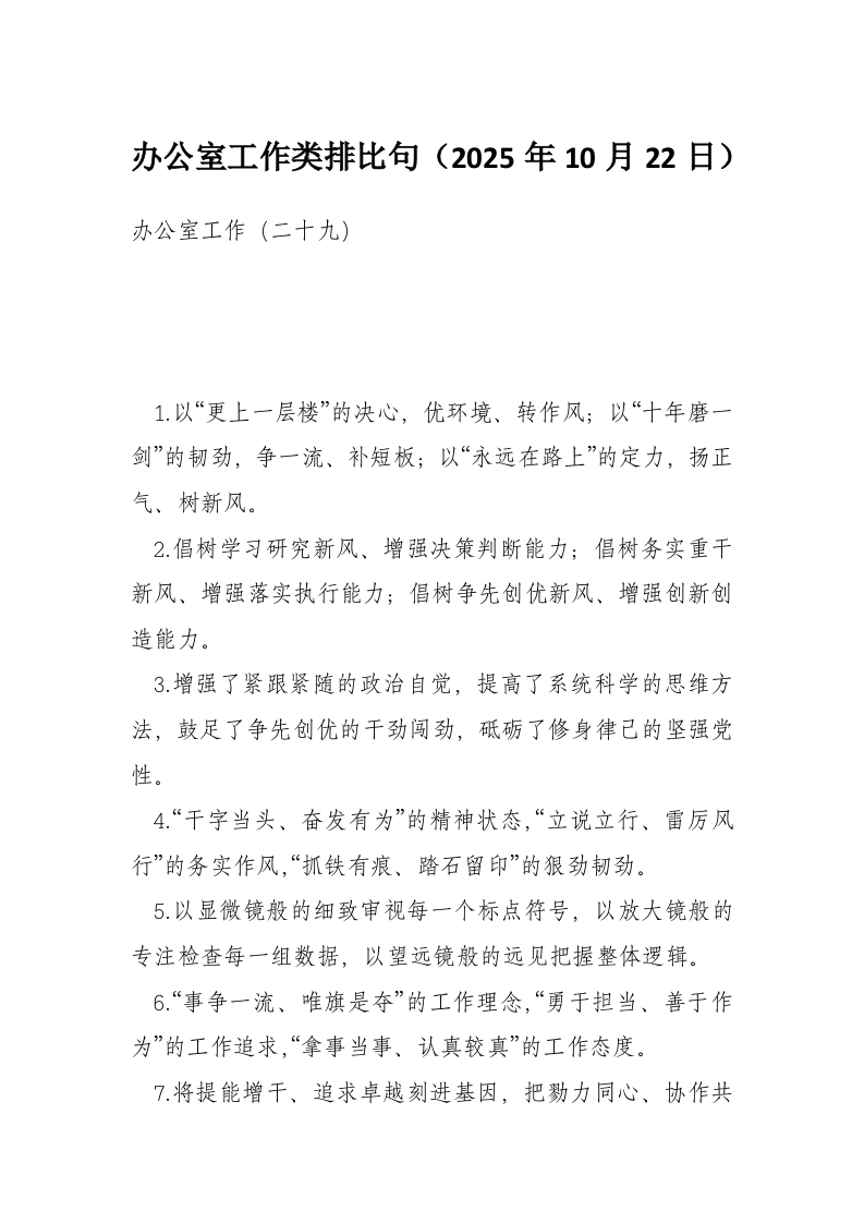办公室工作类排比句(2025年10月22日)