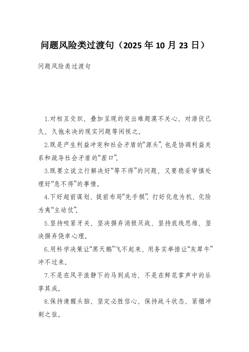 首页每日金句问题风险类过渡句(2025年10月23日)