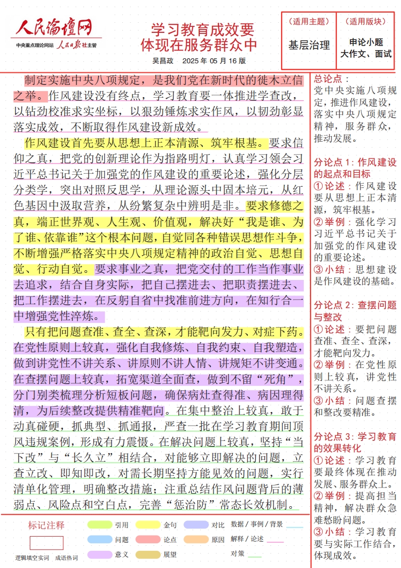 2025.05人民日报精读学习教育成效要体现在服务群众中