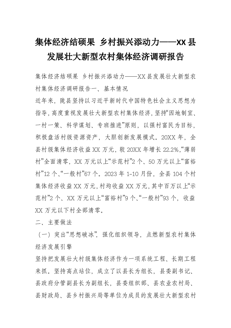 集体经济结硕果 乡村振兴添动力——XX县发展壮大新型农村集体经济调研报告
