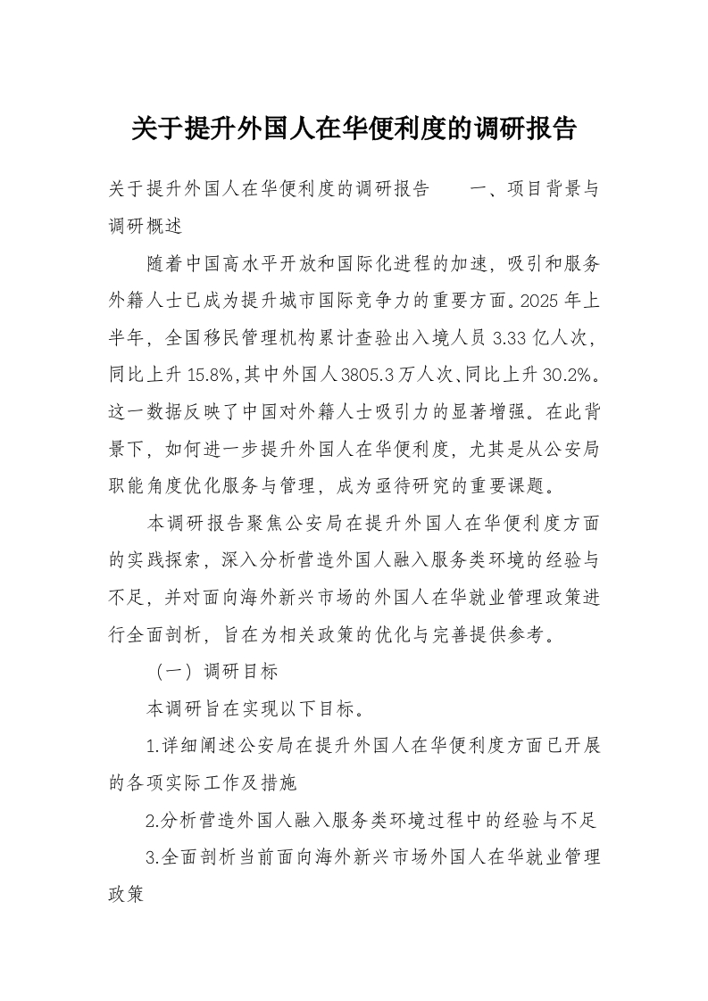 首页讲课讲稿关于提升外国人在华便利度的调研报告