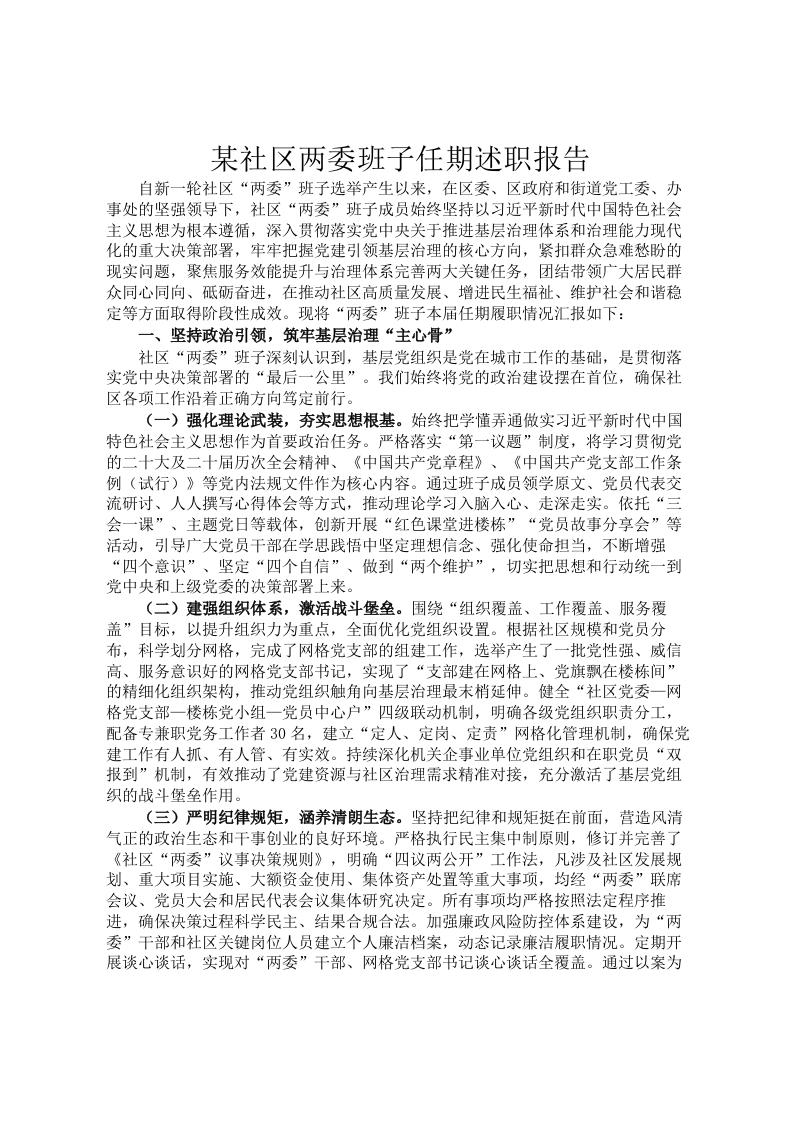 某社区两委班子任期述职报告