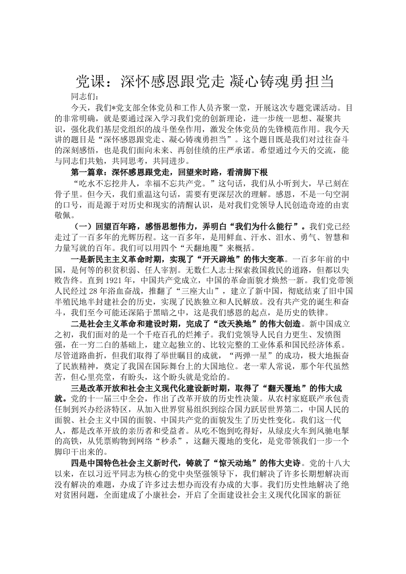 首页讲课讲稿党课:深怀感恩跟党走 凝心铸魂勇担当