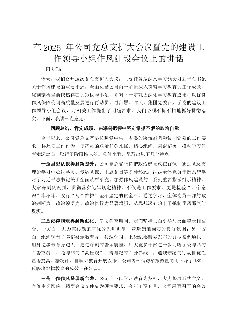 在2025年公司党总支扩大会议暨党的建设工作领导小组作风建设会议上的讲话