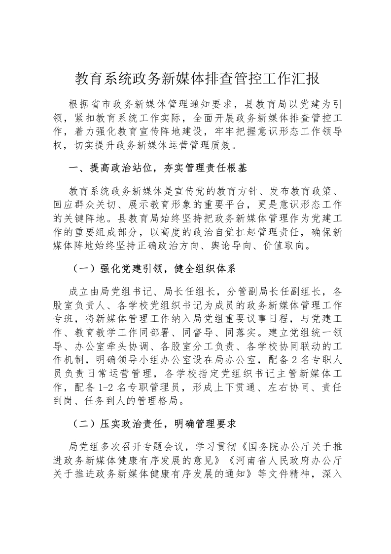 首页材料汇编教育系统政务新媒体排查管控工作汇报