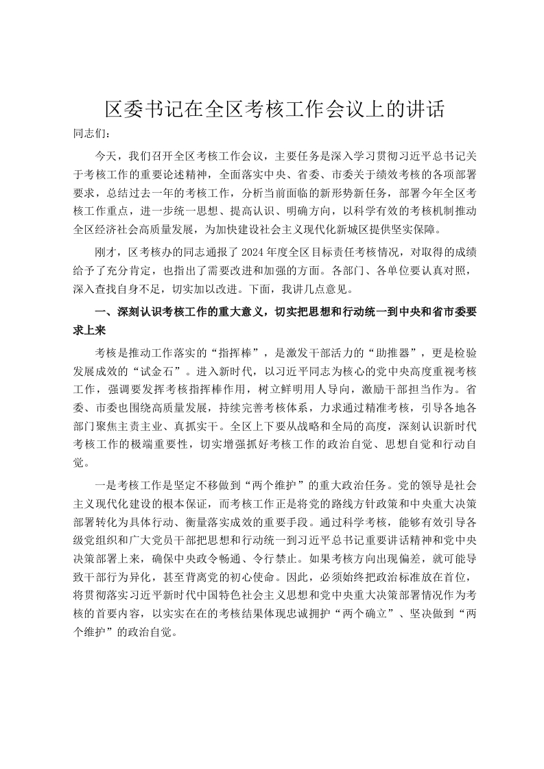 首页材料汇编区委书记在全区考核工作会议上的讲话