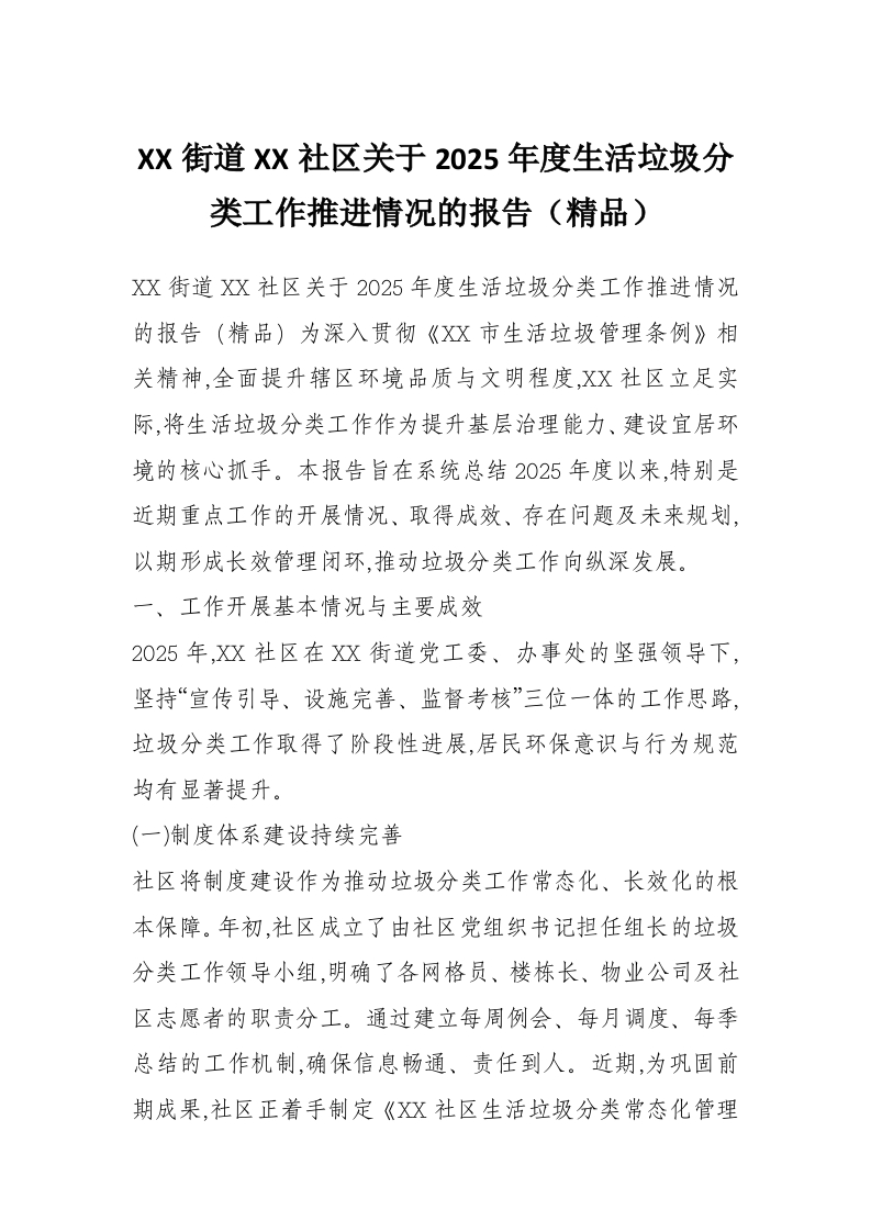 XX街道XX社区关于2025年度生活垃圾分类工作推进情况的报告(精品)