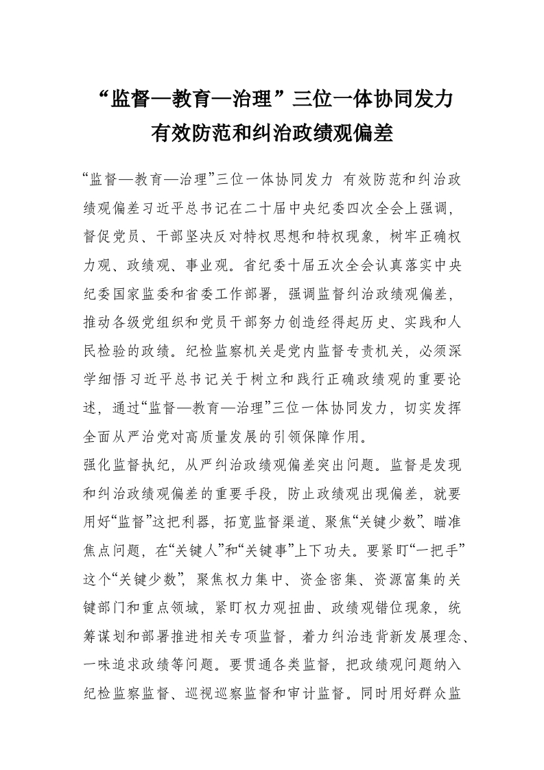 “监督—教育—治理”三位一体协同发力 有效防范和纠治政绩观偏差