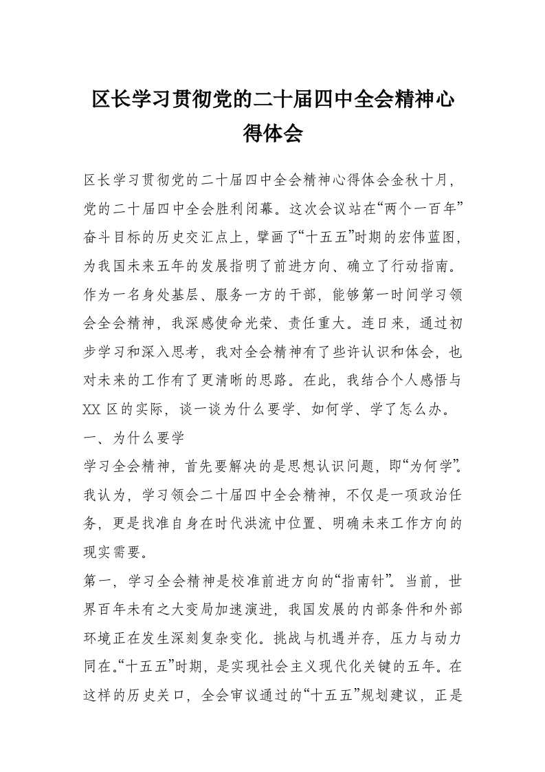 首页写作素材区长学习贯彻党的二十届四中***精神心得体会