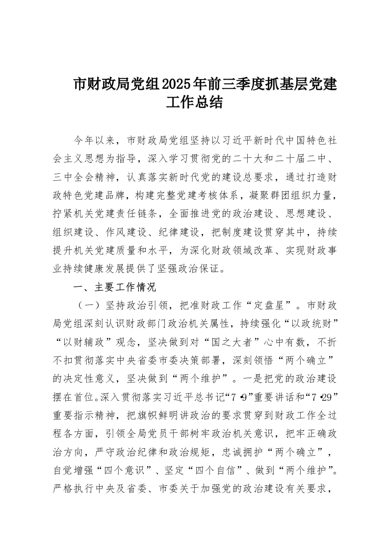 首页写作素材市财政局党组2025年前三季度抓基层党建工作总结