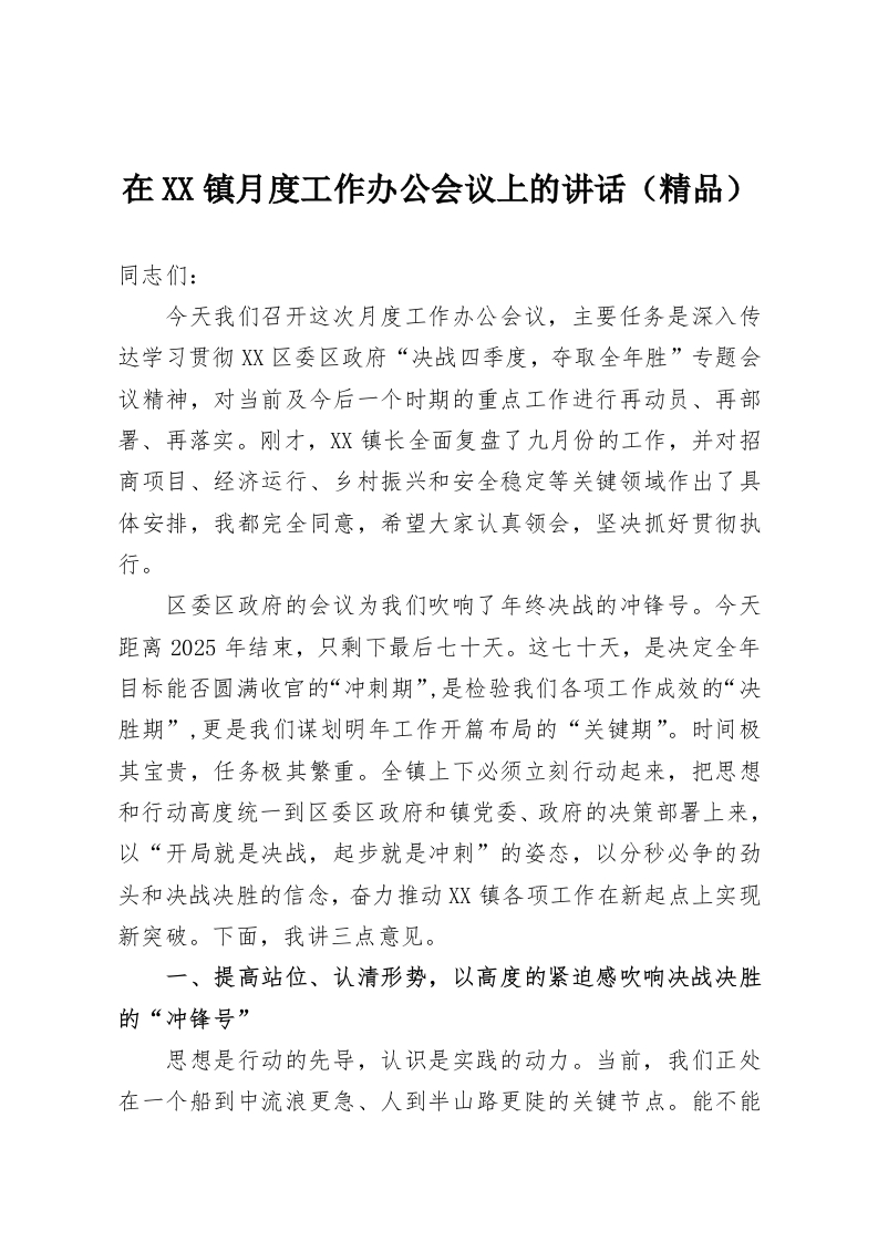 首页写作素材在XX镇月度工作办公会议上的讲话(精品)