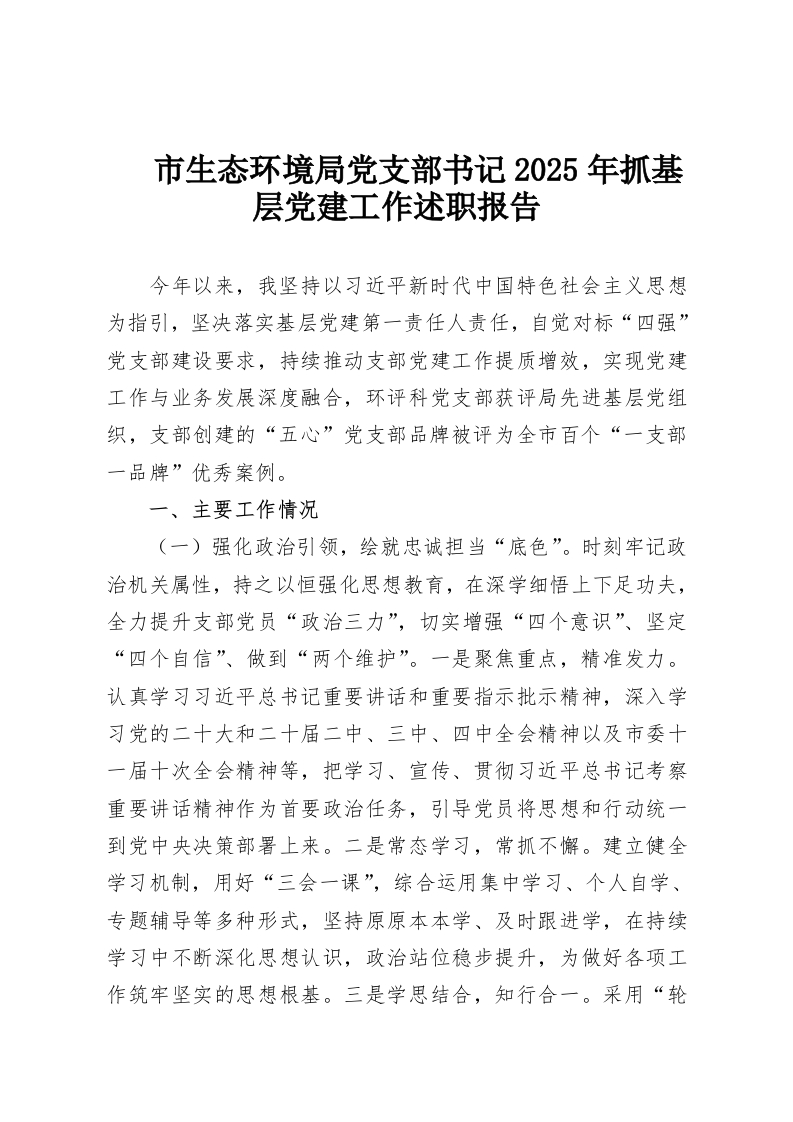 首页写作素材市生态环境局党支部书记2025年抓基层党建工作述职报告
