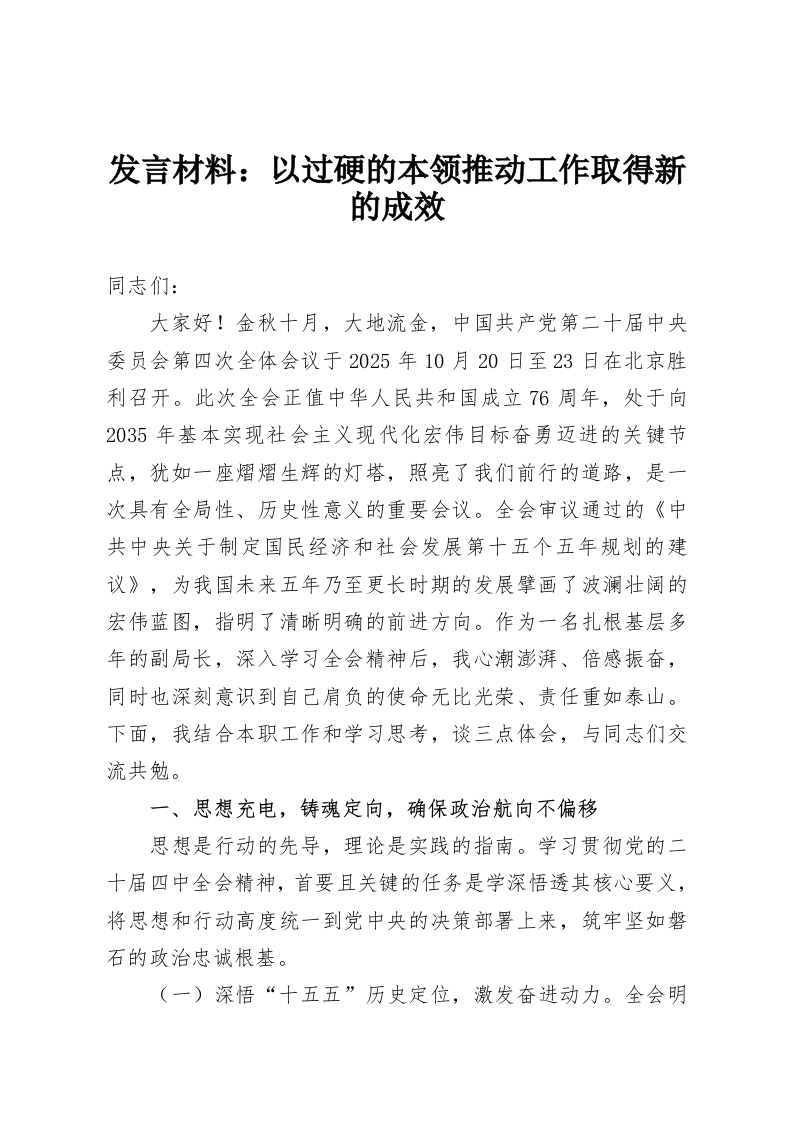 首页写作素材发言材料:以过硬的本领推动工作取得新的成效