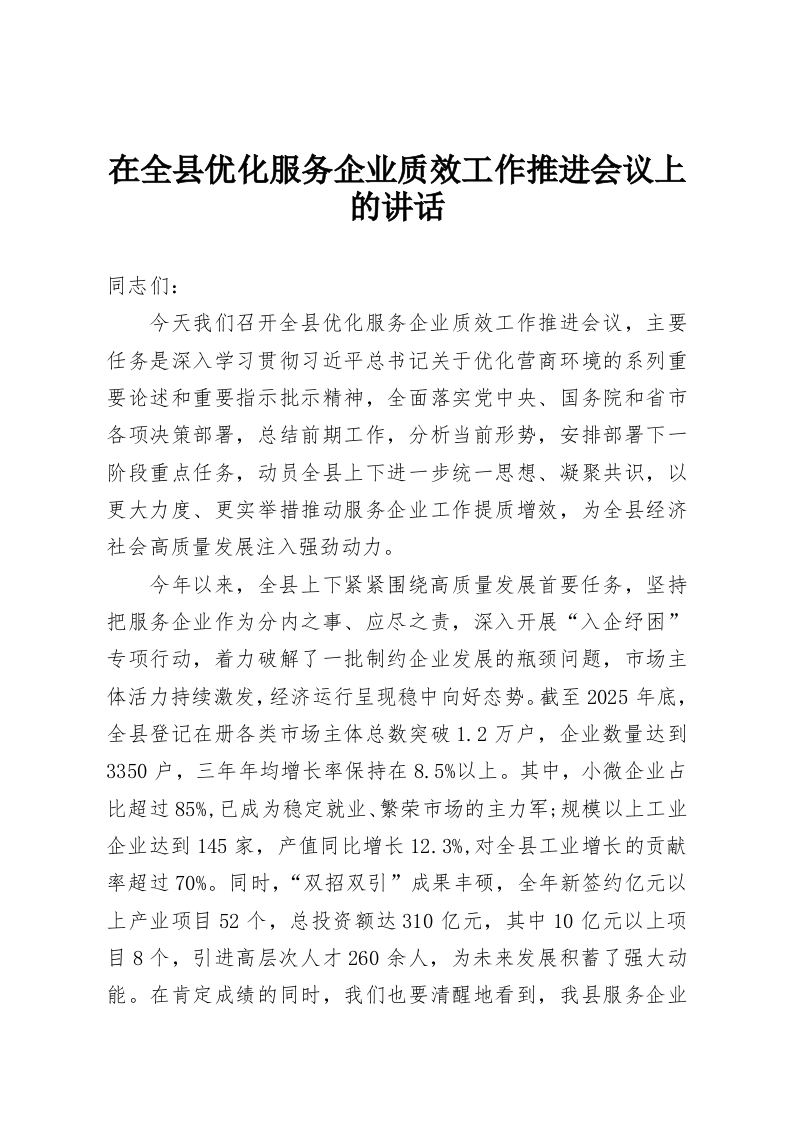 首页写作素材在全县优化服务企业质效工作推进会议上的讲话
