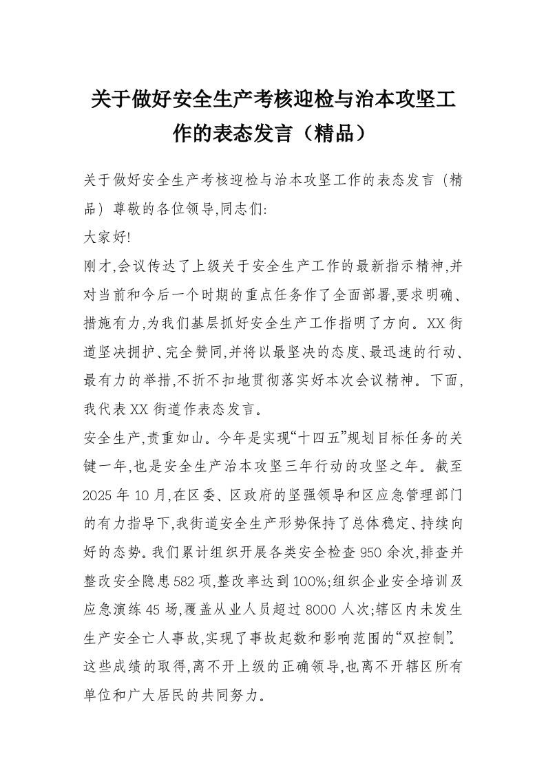 关于做好安全生产考核迎检与治本攻坚工作的表态发言(精品)