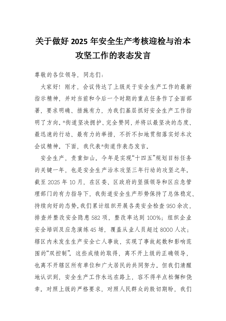 关于做好2025年安全生产考核迎检与治本攻坚工作的表态发言