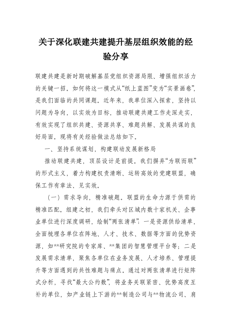 首页学习提升关于深化联建共建提升基层组织效能的经验分享